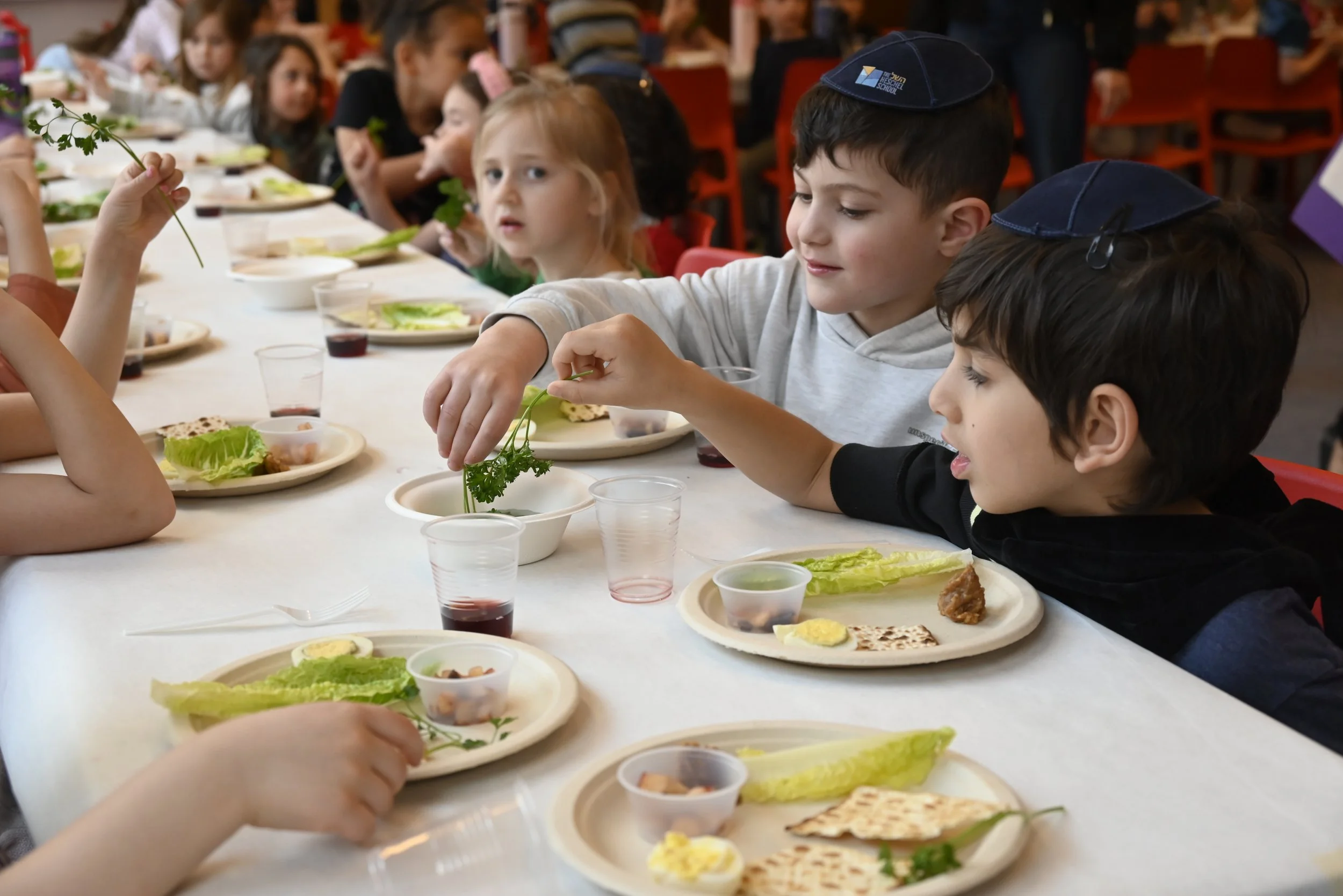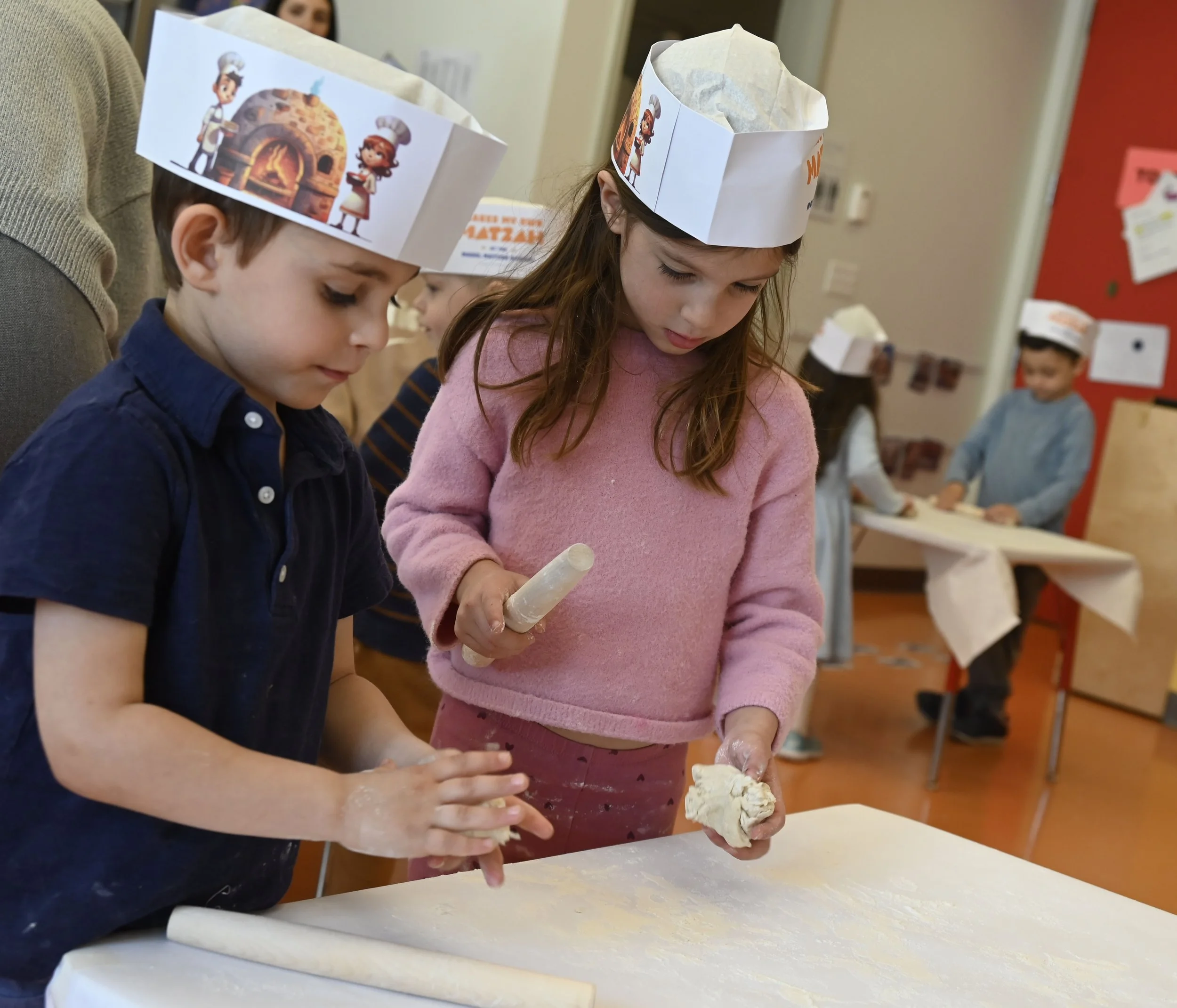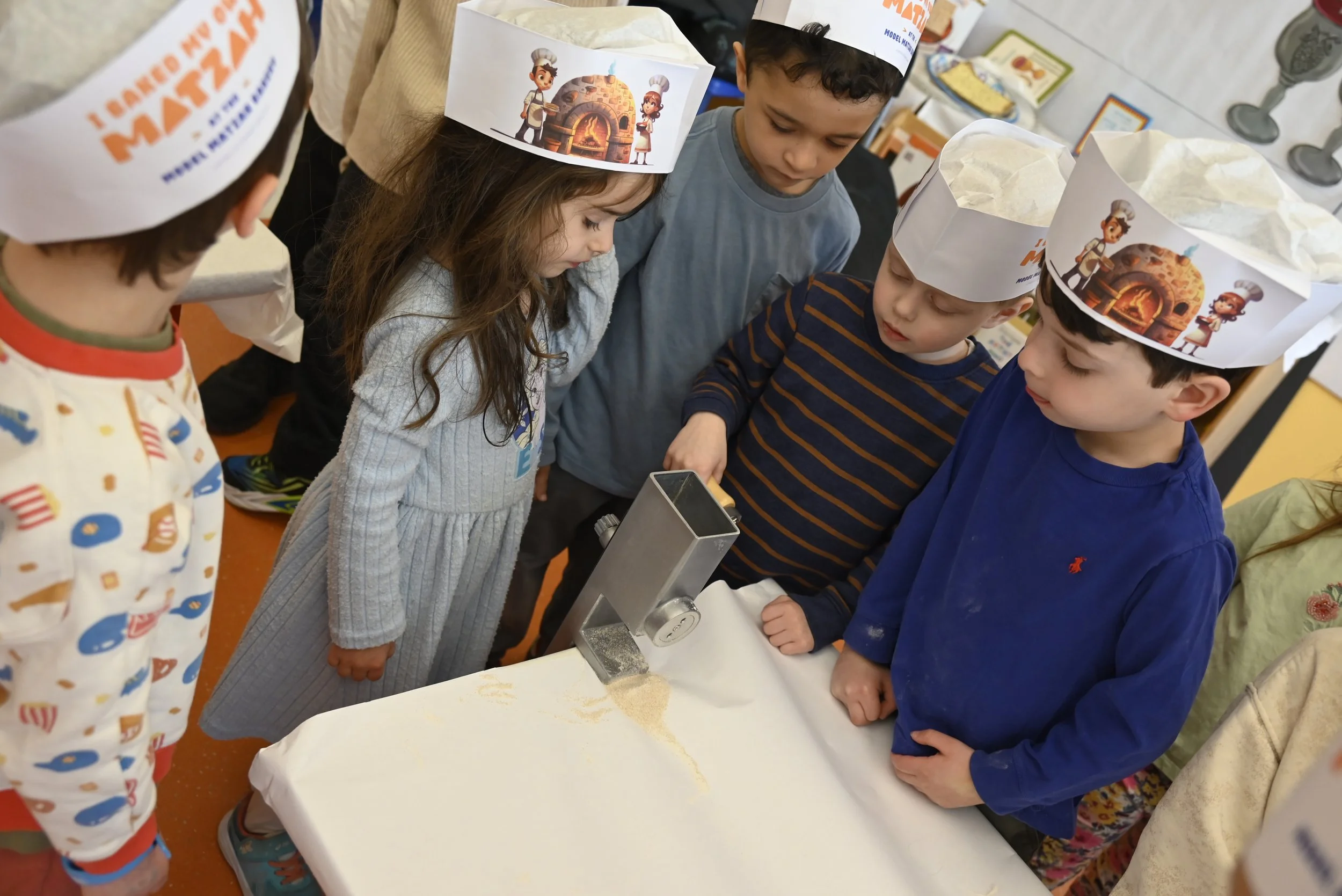 Getting ready for Passover was extra special in Heschel Nursery & Pre-K! The students had a blast at the hands-on Matzah Bakery, mixing, rolling, and tasting their very own creations! Kindergarten students also took part in a model seder!