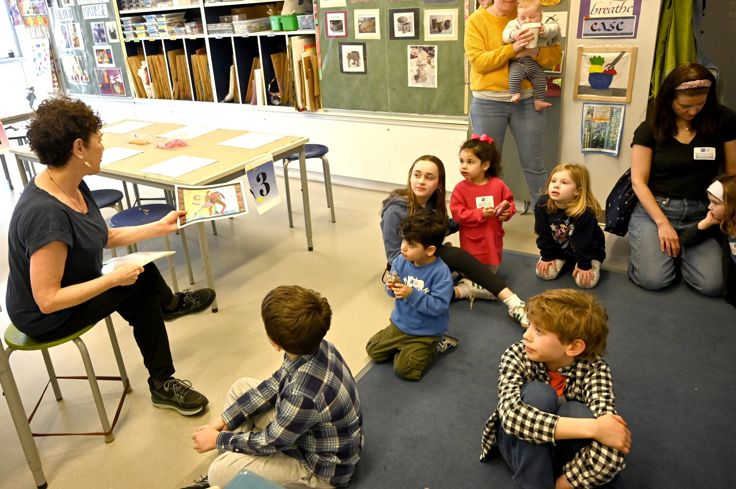 Alumni and their children returned to Heschel for a special morning of art with Maxine. In a beautiful moment of dor l’dor, Maxine’s former students watched as their own children created, explored, and found inspiration with the very same art teacher who once taught them!