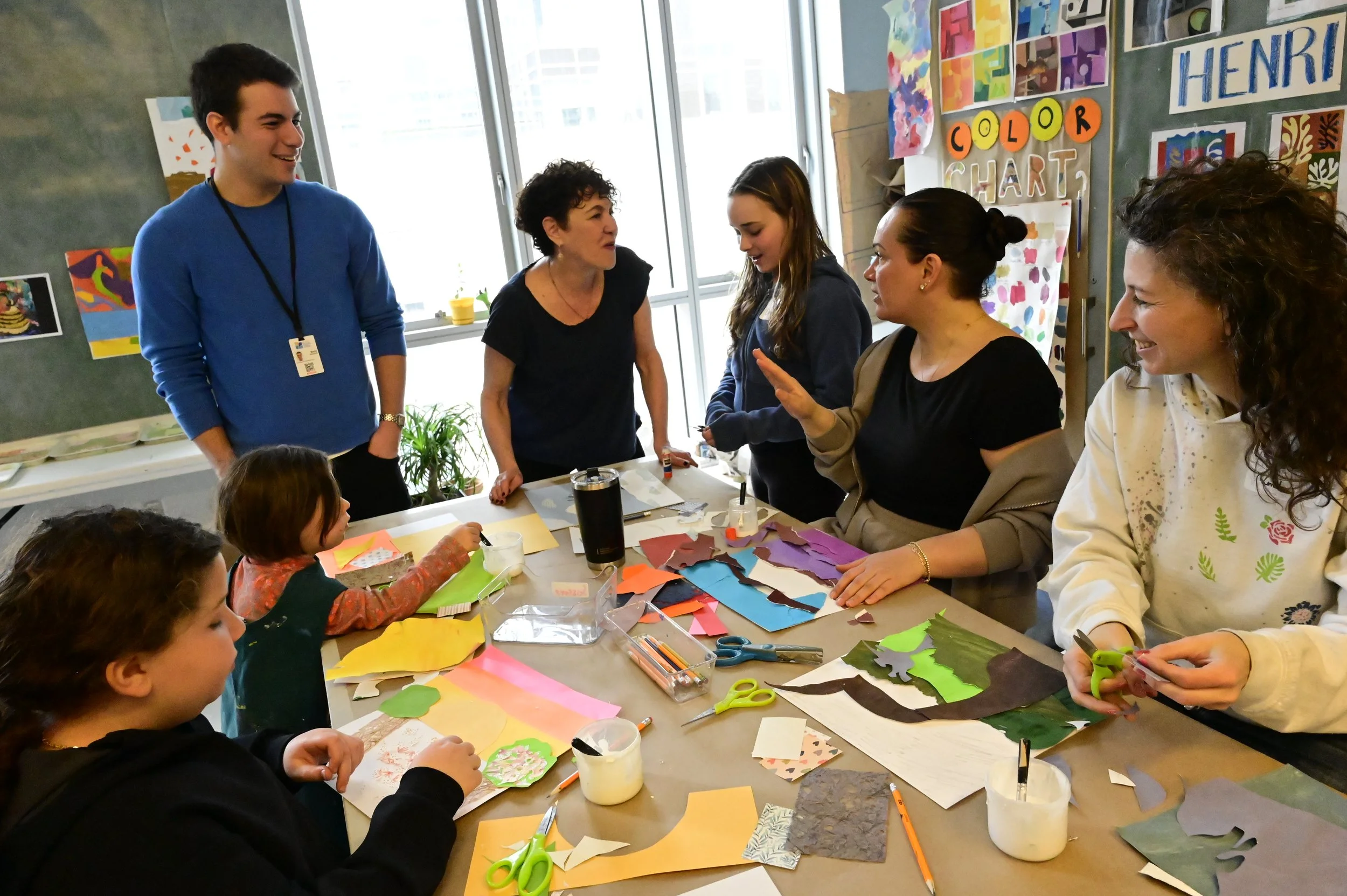 Celebrating 40 years at Heschel, Maxine led a lesson on the seasons, inviting students to experiment with different papers, textures, and colors to create collages that captured the feeling of a particular time of year. It was an amazing morning of creativity, connection, and community.